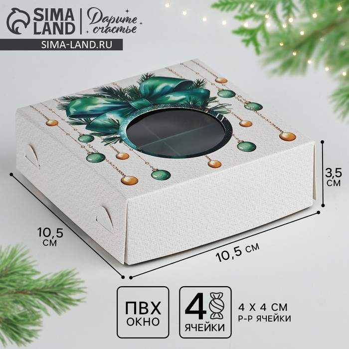 Коробка под 4 конфеты «Новогодние игрушки», 10.5 х 10.5 х 3.5 см, Новый год