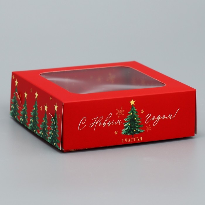 Коробка под 4 конфеты «С Новым годом!», ёлочки, 10.5 х 10.5 х 3.5 см, Новый год