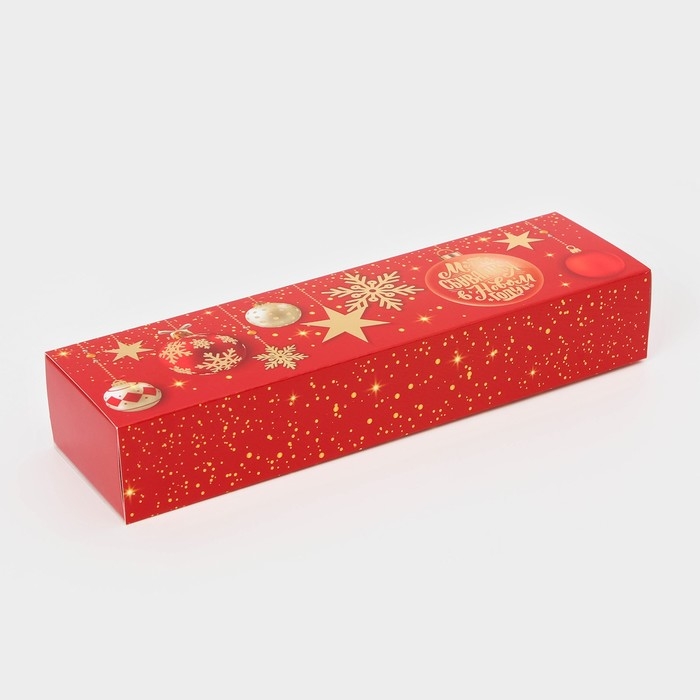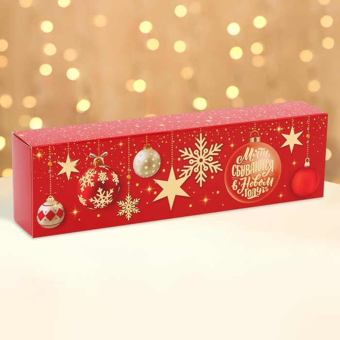- Яркий новогодний дизайн создаст атмосферу праздника, а прочный картон обеспечит надежную защиту сладостей.
