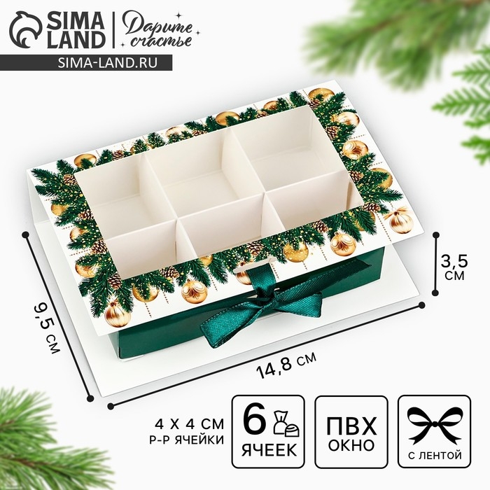 Коробка под 6 конфет с ячейками «Счастливого Нового года!» 14.8 х 9.5 х 3.5 см, Новый год