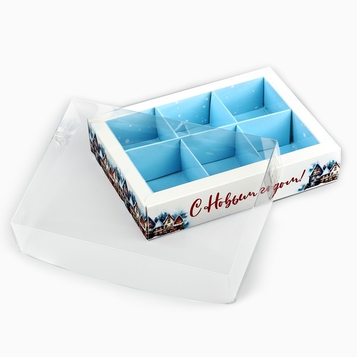 Коробка под 6 конфет с ячейками «Снежный городок», 10 х 14.5 х 3 см, Новый год