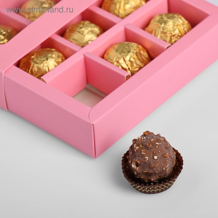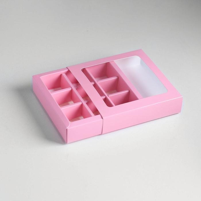 Коробка под 9 конфет с обечайкой, розовый, 14,5 х 14,5 х 3,5 см