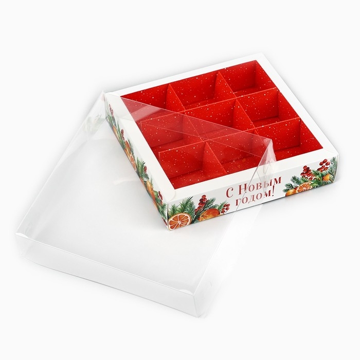 Коробка под 9 конфет с ячейками «Аромат праздника», 14.5 х 14.5 х 3 см, Новый год