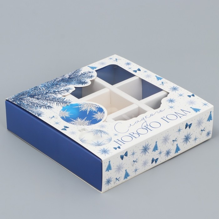 Коробка под 9 конфет с ячейками «Сладкого Нового года» 14.5 х 14.5 х 3.5 см, Новый год