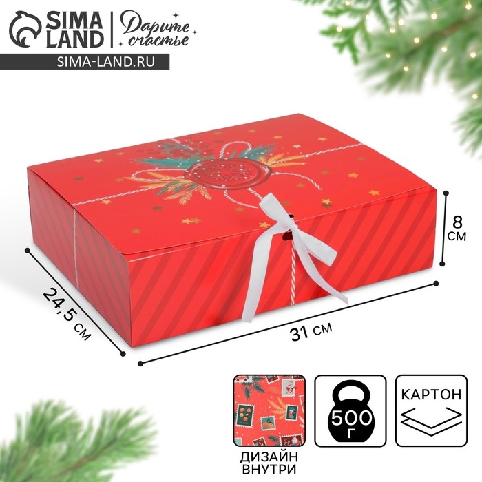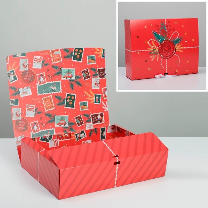 Коробка подарочная новогодняя складная двухсторонняя «Почта новогодняя», 31 х 24.5 х 8 см, Новый год