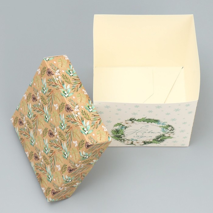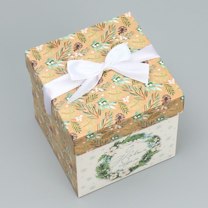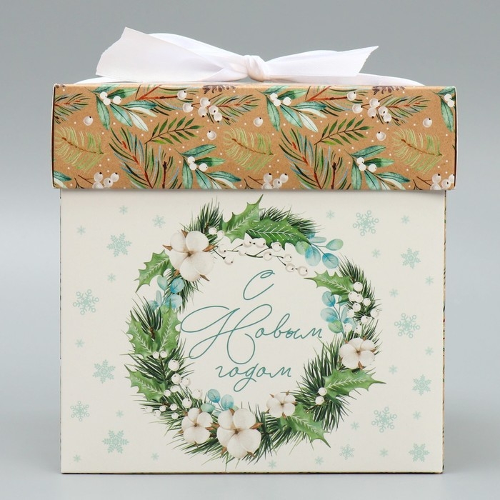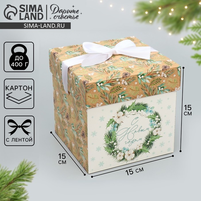 Коробка подарочная новогодняя складная «Новогодний венок», 15 х 15 х 15 см, Новый год