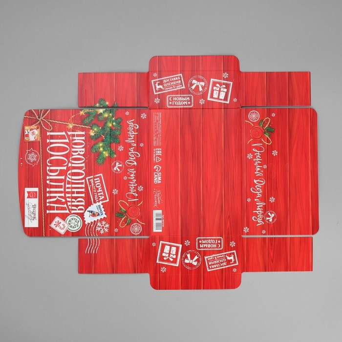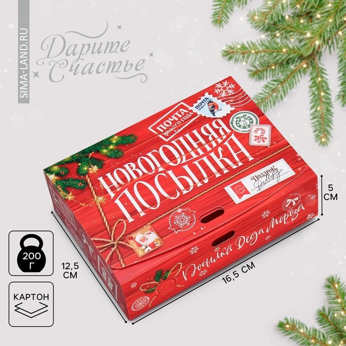 Коробка подарочная новогодняя складная «Новогодняя посылка», 16.5 х 12.5 х 5 см, БЕЗ ЛЕНТЫ, Новый год