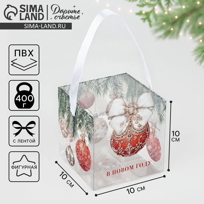 Коробка подарочная новогодняя складная ПВХ, «Новогодний шар», 10 х 10 х 10 см, Новый год