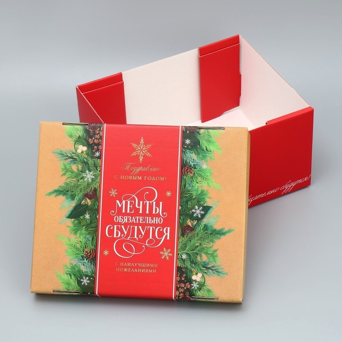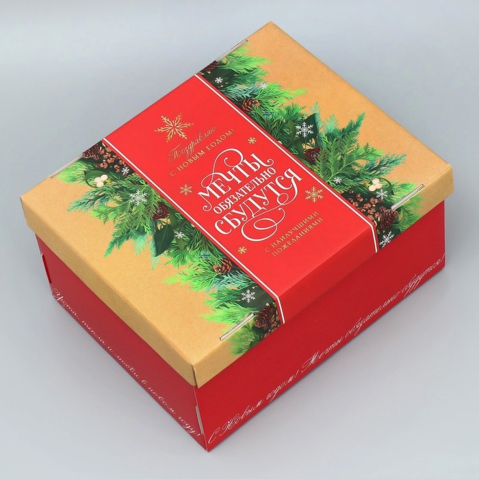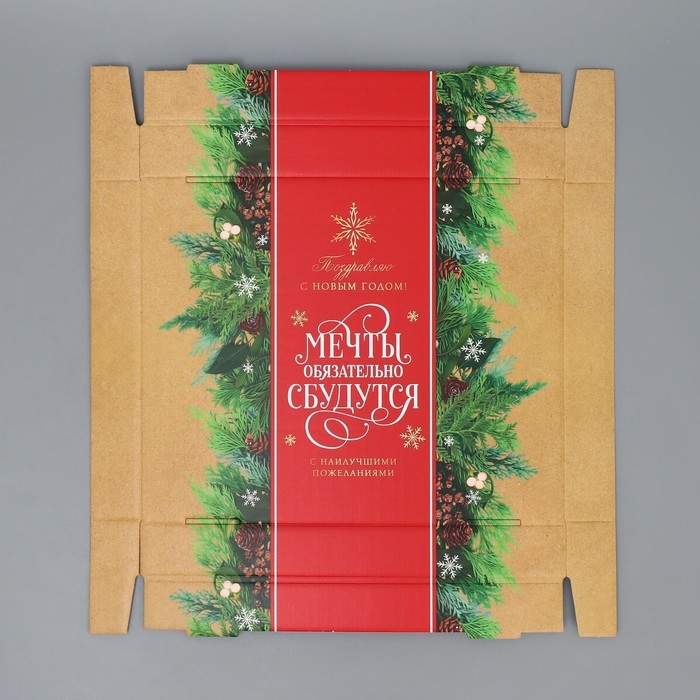 Коробка подарочная новогодняя складная «С наилучшими пожеланиями», 31.2 х 25.6 х 16.1 см, Новый год