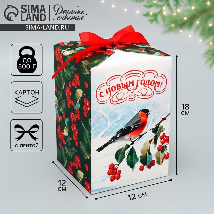 Коробка подарочная новогодняя складная «С Новым годом!», снегирь, 12 х 18 х 12 см, Новый год