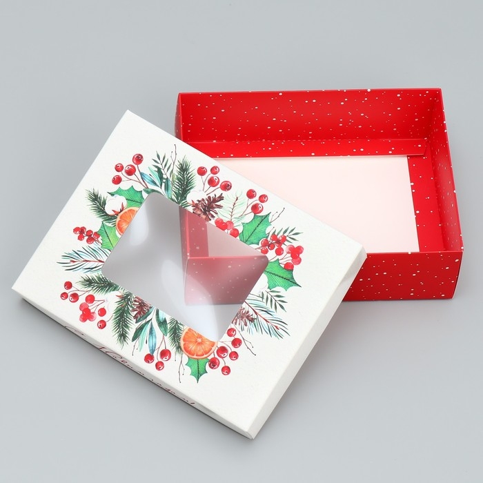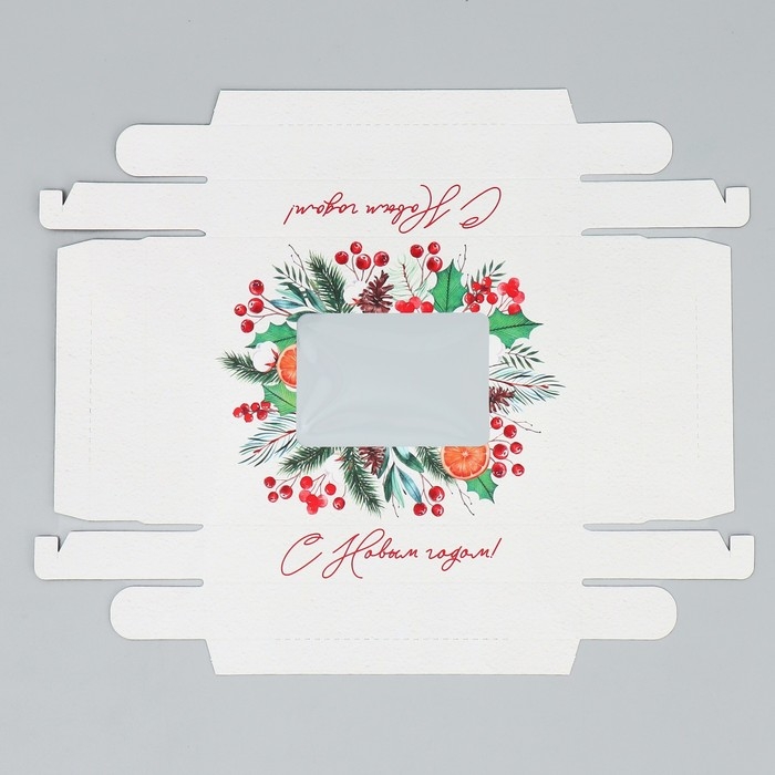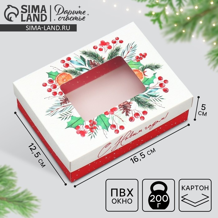 Коробка подарочная новогодняя складная «С Новым годом», венок, 16.5 х 12.5 х 5 см, Новый год