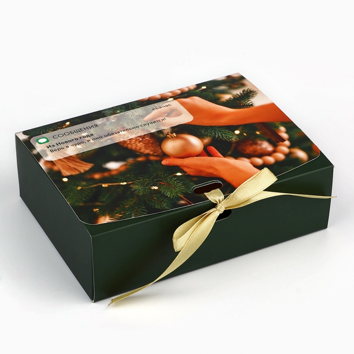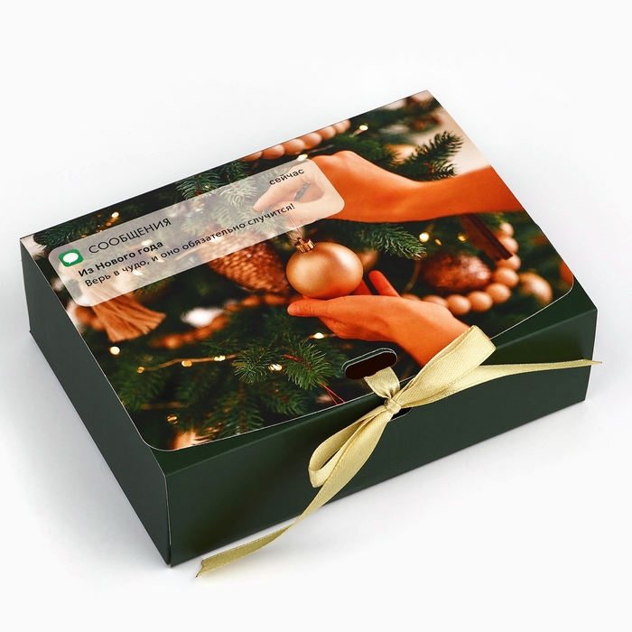 Коробка подарочная новогодняя складная «Верь в чудо», 16.5 х 12.5 х 5 см, Новый год