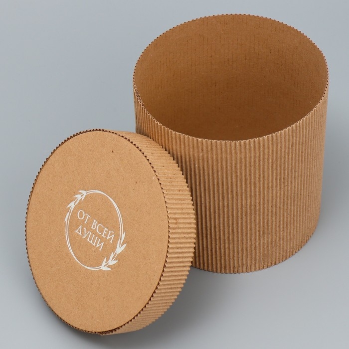 Коробка подарочная шляпная из микрогофры, упаковка, «От всей души», 15 х 15 см