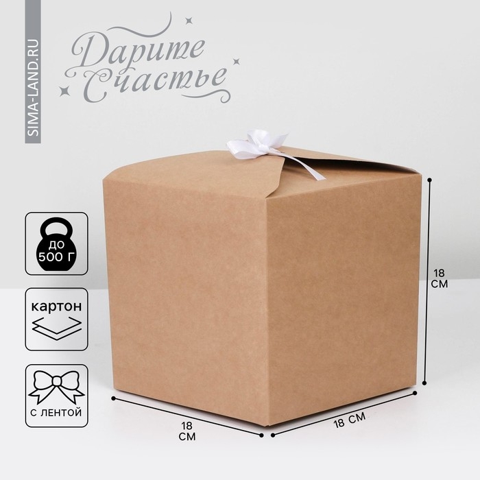 Коробка подарочная складная крафтовая, упаковка, 18 х 18 х 18 см