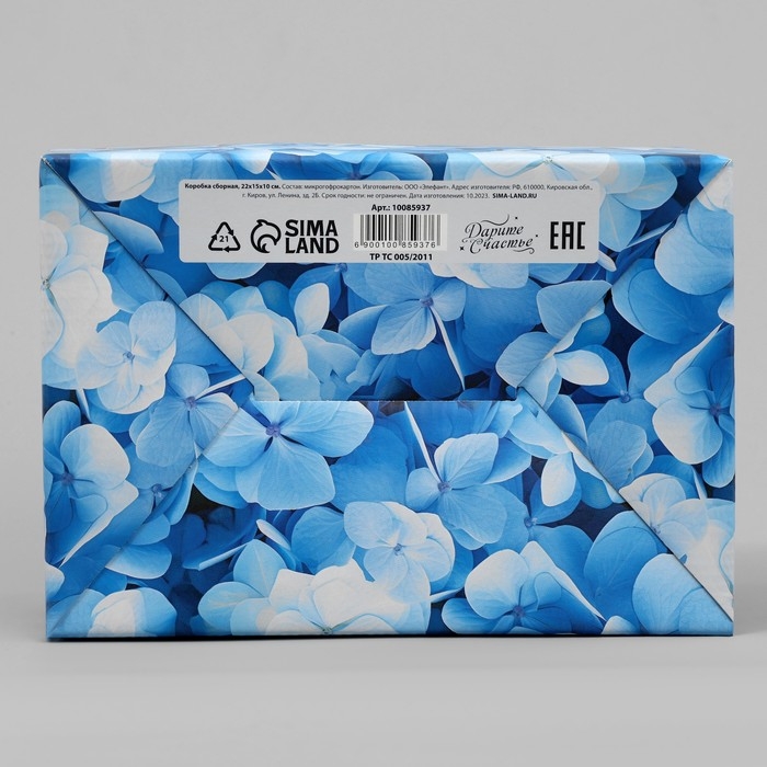Коробка подарочная складная, упаковка, «Цветущая гортензия», 22 х 15 х 10 см