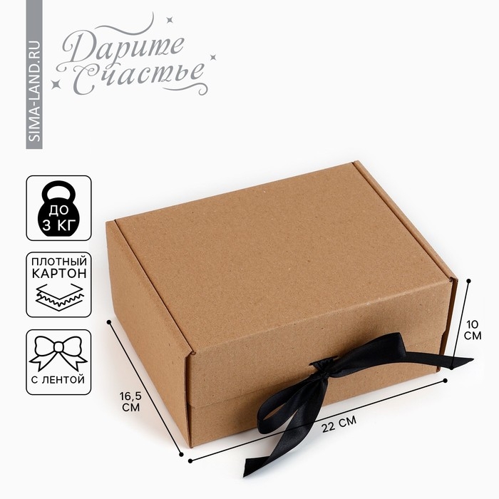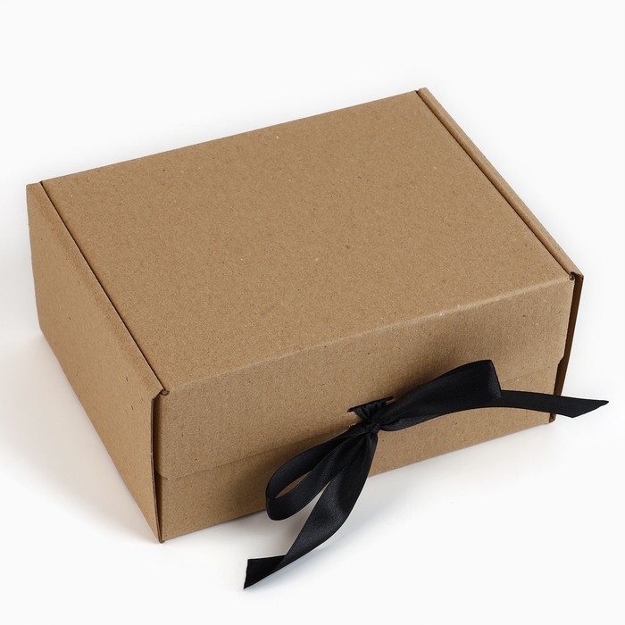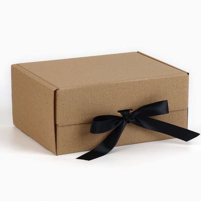 Коробка подарочная складная, упаковка, «Крафт, чёрная лента», 22 х 16.5 х 10 см