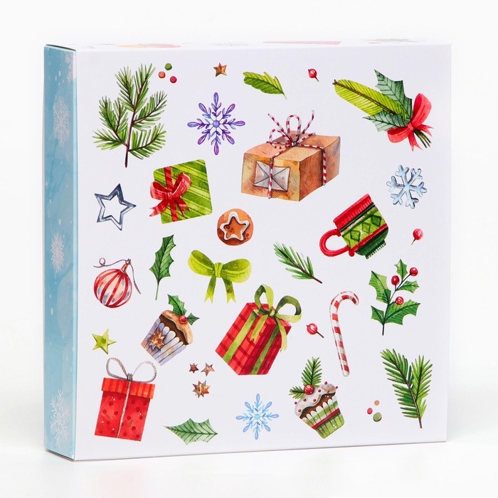 Новый год. Коробка под 9 конфет "Новогодний фонарик", 13,7 х 13,7 х 3,5 см, кондитерская упаковка