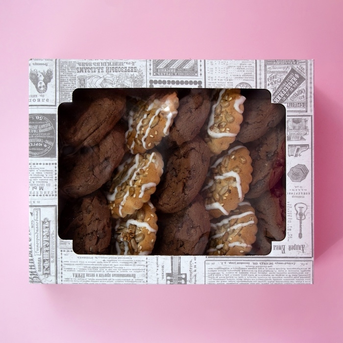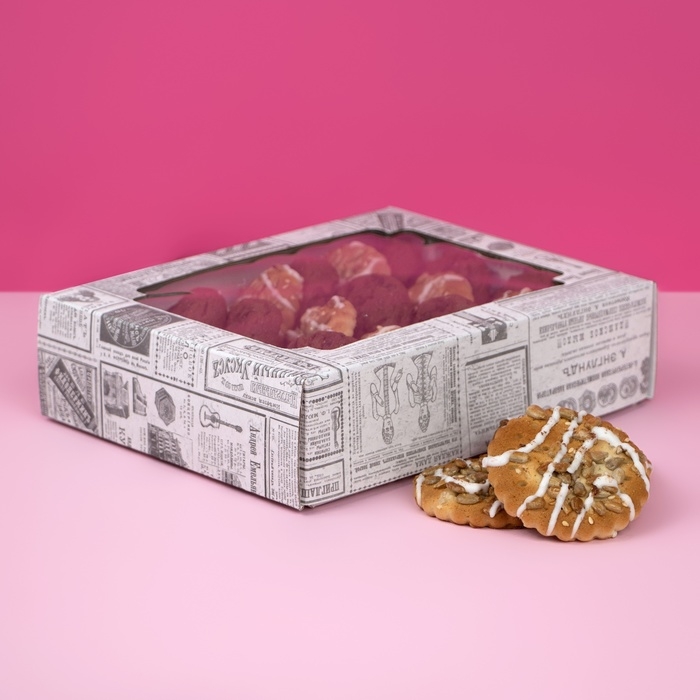 Коробка самосборная, крышка-дно, с окном, «Газета» 18 х 15 х 5 см