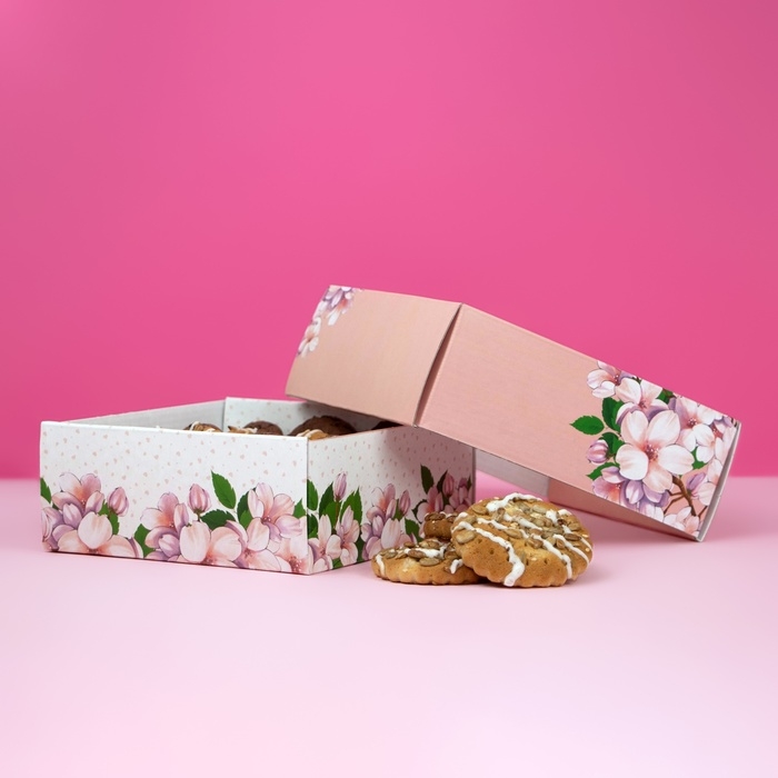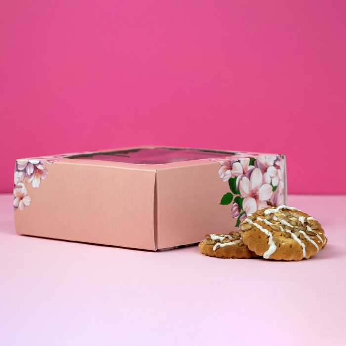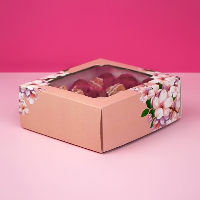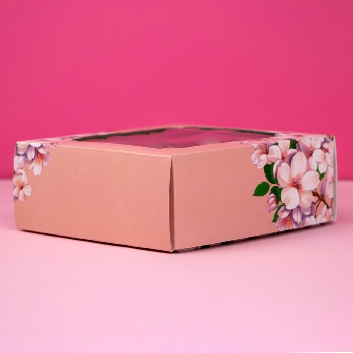 Коробка самосборная, крышка-дно, с окном,"Пусть в твоём сердце всегда будет весна" 14,5 х 14