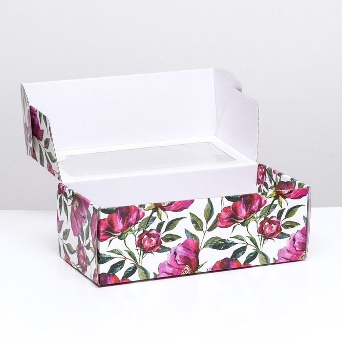 Коробка самосборная, с окном, "Акварельные цветы" 16 х 35 х 12 см набор 5 шт