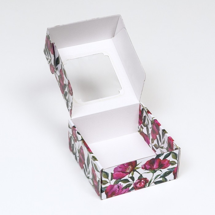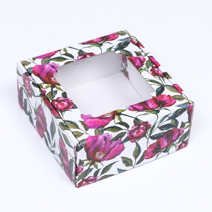 Коробка самосборная, с окном, "Акварельные цветы", 19 х 19 х 9 см набор 5 шт