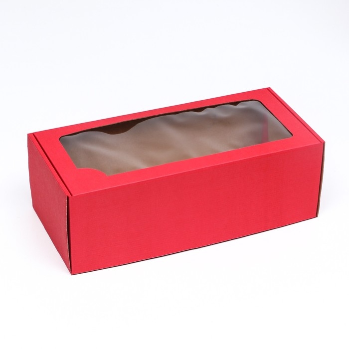 Коробка самосборная, с окном, алая, 16 х 35 х 12 см