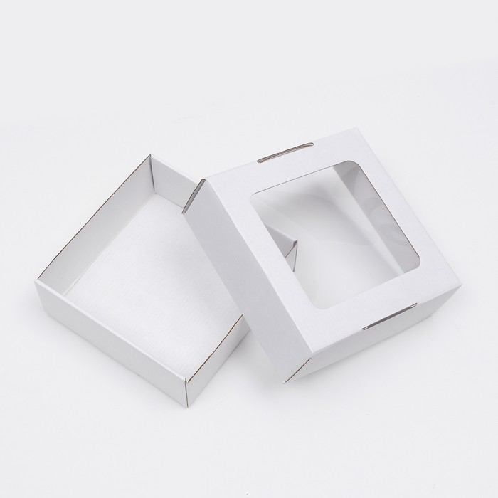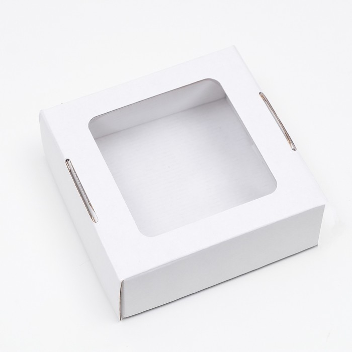 Коробка самосборная, с окном, крафт, белая, 16 х 16 х 6 см