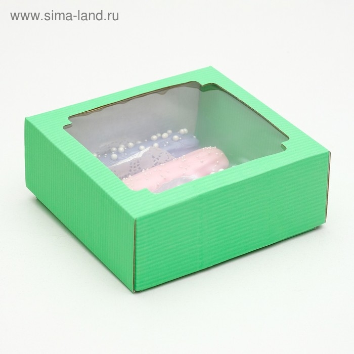 Коробка сборная, крышка-дно, с окном, мятная, 14,5 х 14,5 х 6 см