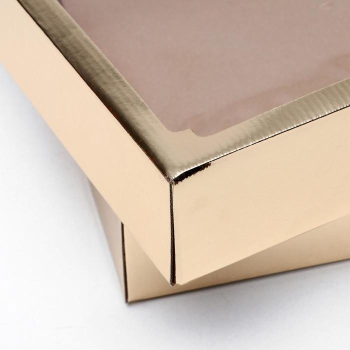 Коробка сборная, крышка-дно, с окном, золотая, 37 х 32 х 7 см
