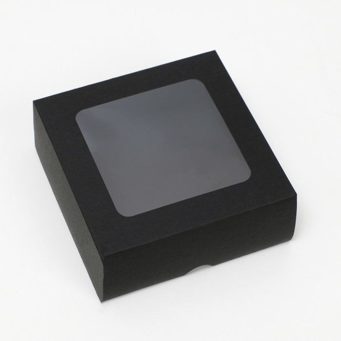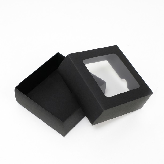 Коробка складная, крышка-дно, с окном, черная, 13 х 13 х 5 см