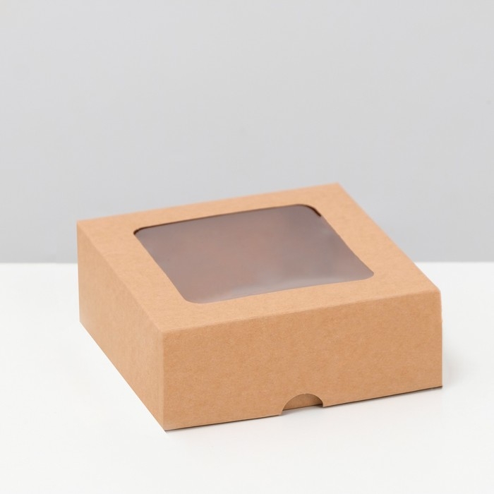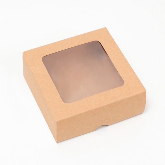 Коробка складная, крышка-дно, с окном, крафтовая, 13 х 13 х 5 см