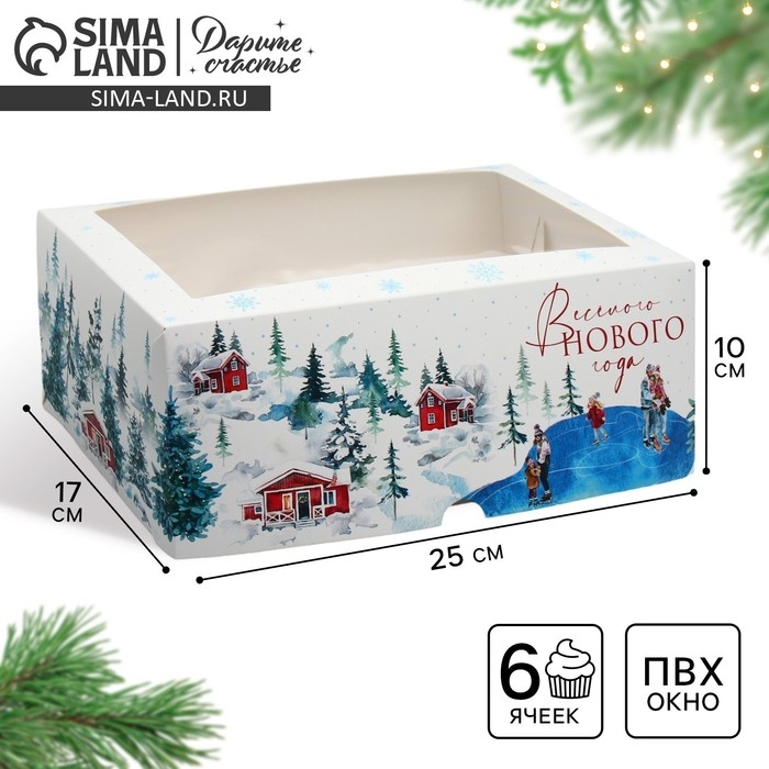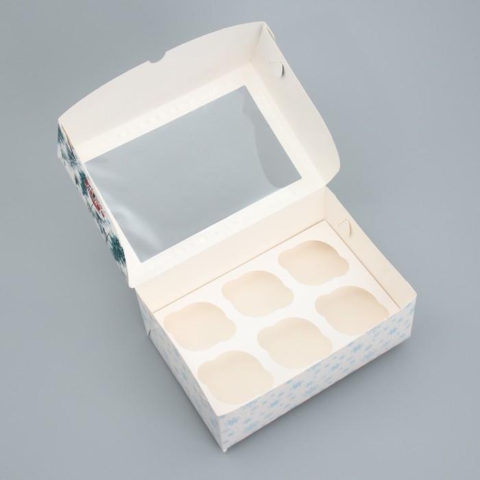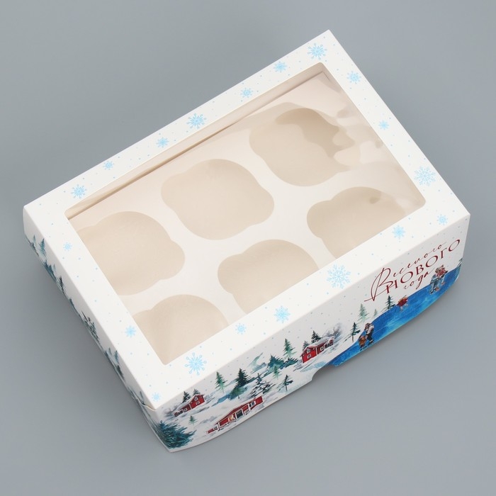 Коробка складная на 6 капкейков с окном «Веселого Нового года», 25 х 17 х 10 см, Новый год
