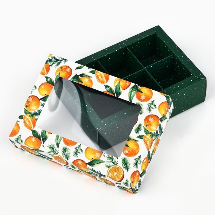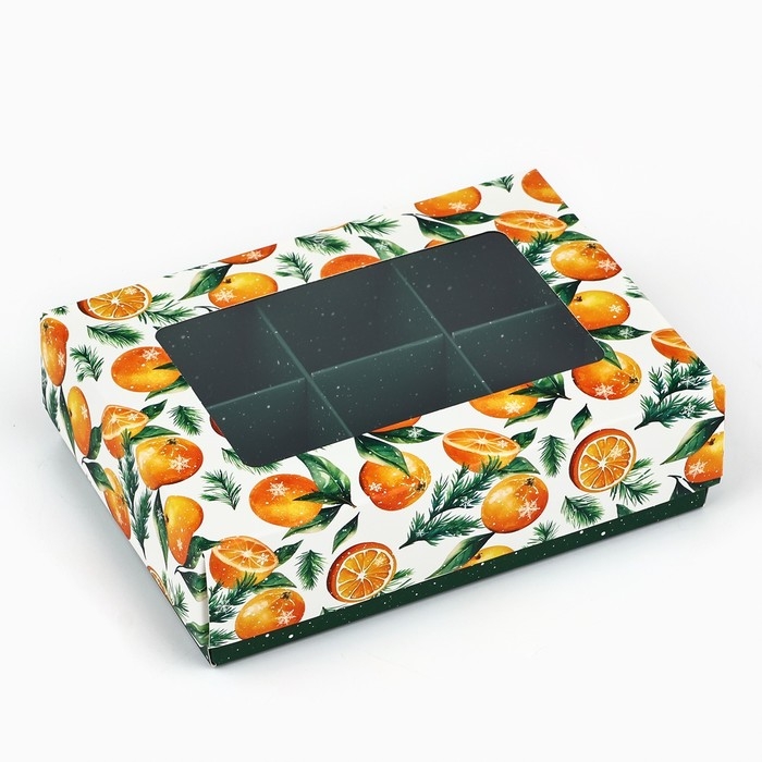 Коробка складная под 6 конфет «Мандаринки», 13.5 х 9.8 х 3.8 см, Новый год