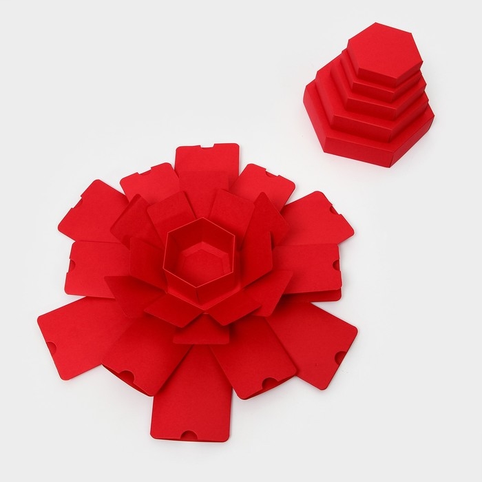 Особенностью этой коробки является её конструкция. Она состоит из нескольких секций, которые складываются одна в другую, образуя компактный прямоугольник. При раскрытии коробки эти секции разворачиваются, создавая эффект раскладывания. Это добавляет элемент неожиданности и интриги, делая процесс открытия подарка ещё более захватывающим.