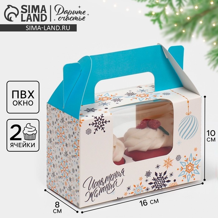 Коробочка для кексов «Исполнения желаний», 16 х 10 х 8 см, Новый год
