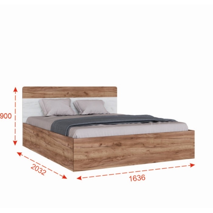 Корпус кровати,1636х2032х900, Дуб крафт табачный/дуб крафт белый (Спальня Вегас) – это стильное и функциональное решение для вашей спальни. Корпус кровати в спокойных древесных оттенках.