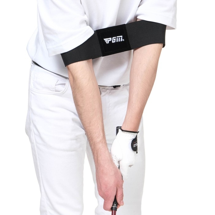 Изготовлен из высокоэластичной ткани, это простой и эффективный инструмент для тренировки по гольфу. Устанавливает правильное положение рук и локтя, не позволяя им расходится при замахе.