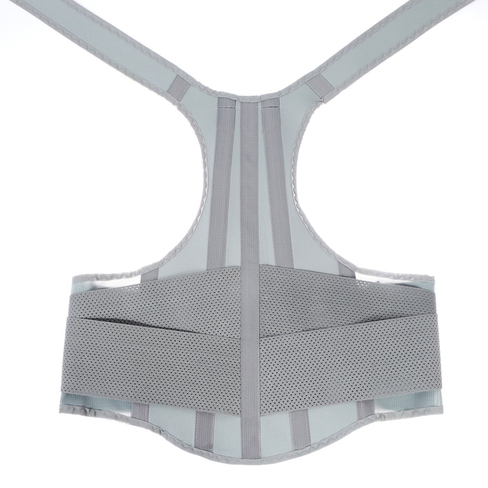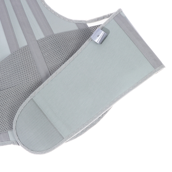 Корсет ортопедический корректирующий, усиленный серый (корректор осанки 4 ребра) - это специальное средство для поддержания правильной осанки и коррекции искривления позвоночника. Он изготовлен из качественных материалов, имеет усиленную конструкцию с четырьмя ребрами жесткости и регулируемые лямки. Корсет подходит для использования как мужчинами, так и женщинами и имеет размер XL-52см.