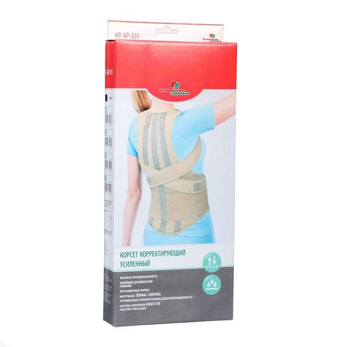 Корсет имеет усиленную конструкцию с четырьмя ребрами жесткости, которые помогают поддерживать правильное положение позвоночника и предотвращают его дальнейшее искривление. Он также имеет регулируемые лямки, которые позволяют индивидуально настроить корсет под конкретные потребности пользователя.