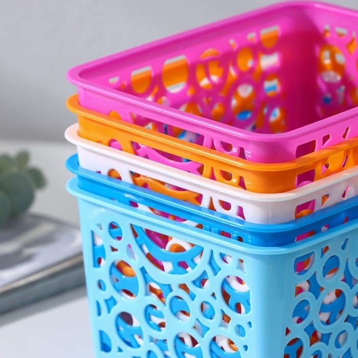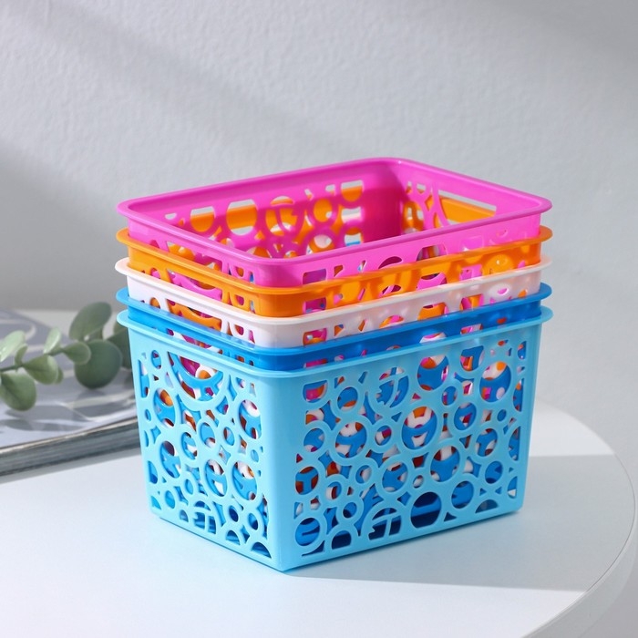 Корзина для хранения Доляна «Круги», пластик, 11,5×14×8 см, цвет МИКС