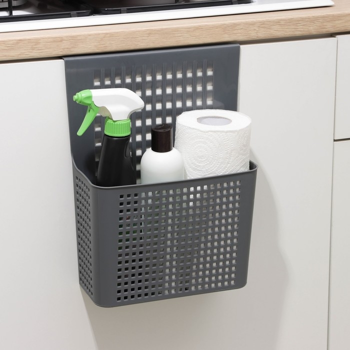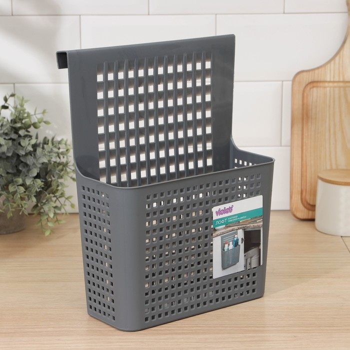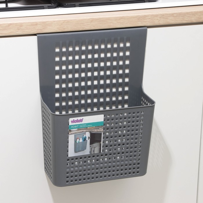 Корзина для хранения навесная на дверцу «Лофт», 24,5×9,5×31,5 см, цвет серый