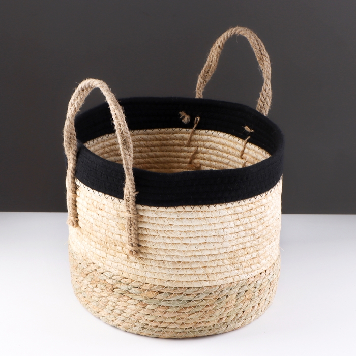 Корзина для хранения "Перу", с ручками, 29 х 29 х 25 см, натуральный, чёрный