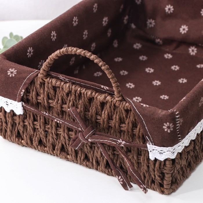 Корзина для хранения плетёная ручной работы Доляна «Маргаритки», 31×22×10 см, цвет коричневый