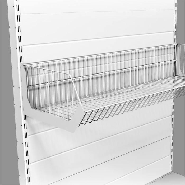 Корзина для торгового стеллажа — универсальное приспособление для выкладки товаров. Такие полки помогают опрятно организовать торговое пространство. В них удобно демонстрировать ассортимент.