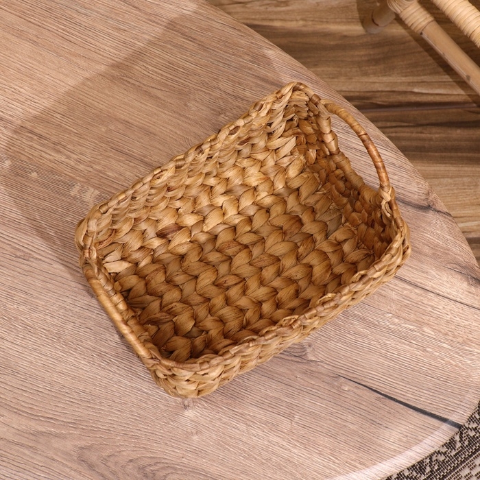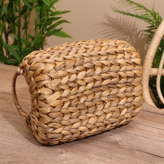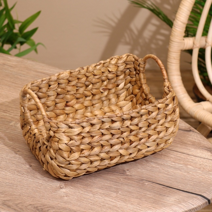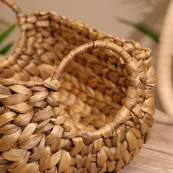 Плетёная корзинка ручной работы сделана из водного гиацинта. Поверхность обработана водоотталкивающим и антибактериальным покрытием, поэтому изделия можно использовать в ванных комнатах.