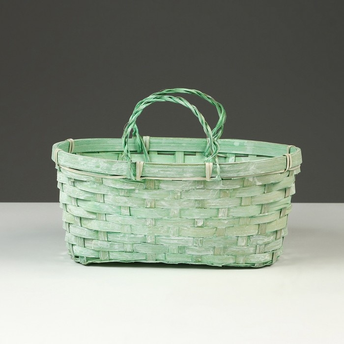 Корзина плетеная, 26 х 13 х 11 см, зелёная, бамбук