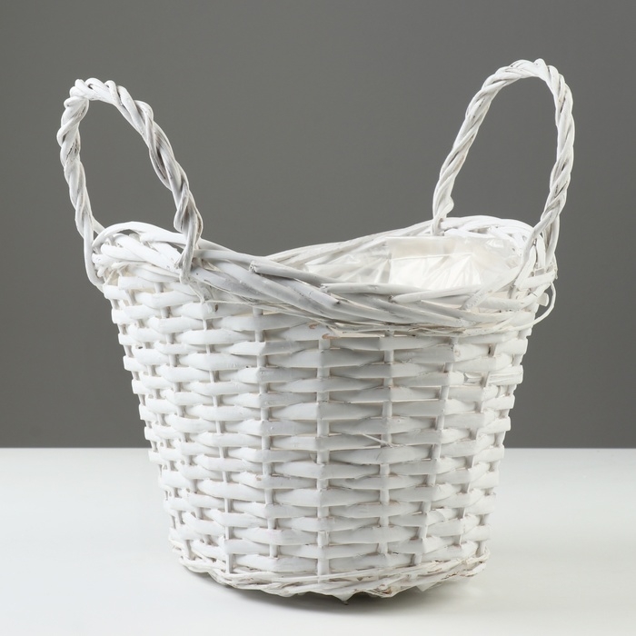 Корзина плетеная, 28 х 24 х 16/21 см, белая, ива