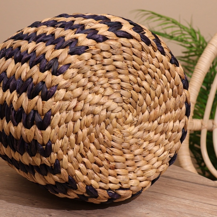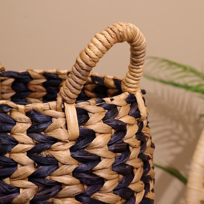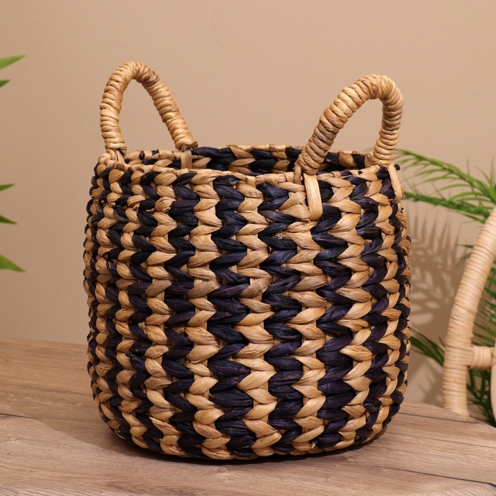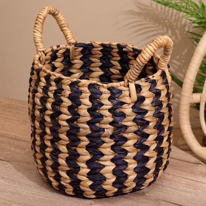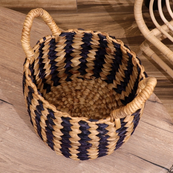 Плетёная корзинка ручной работы сделана из водного гиацинта. Поверхность обработана водоотталкивающим и антибактериальным покрытием, поэтому изделия можно использовать в ванных комнатах.