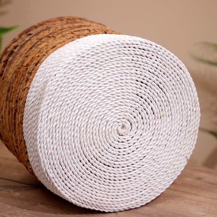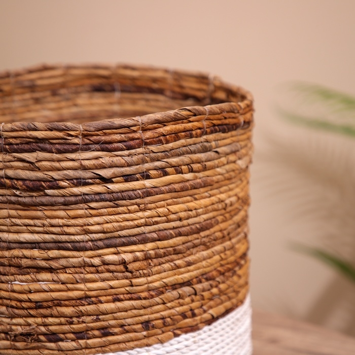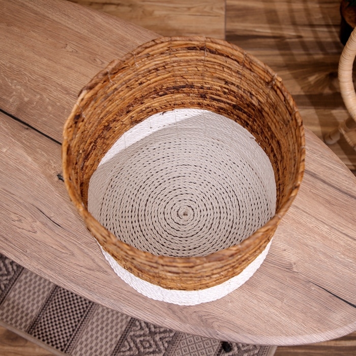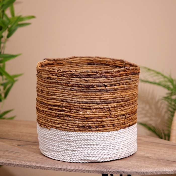 Плетёная корзинка сделана из экоматериала вручную, поэтому двух одинаковых экземпляров не найти.