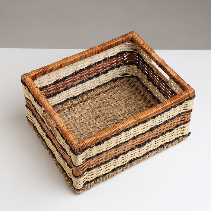 Корзина плетеная, 39х31х21,5 см, ротанг, джут